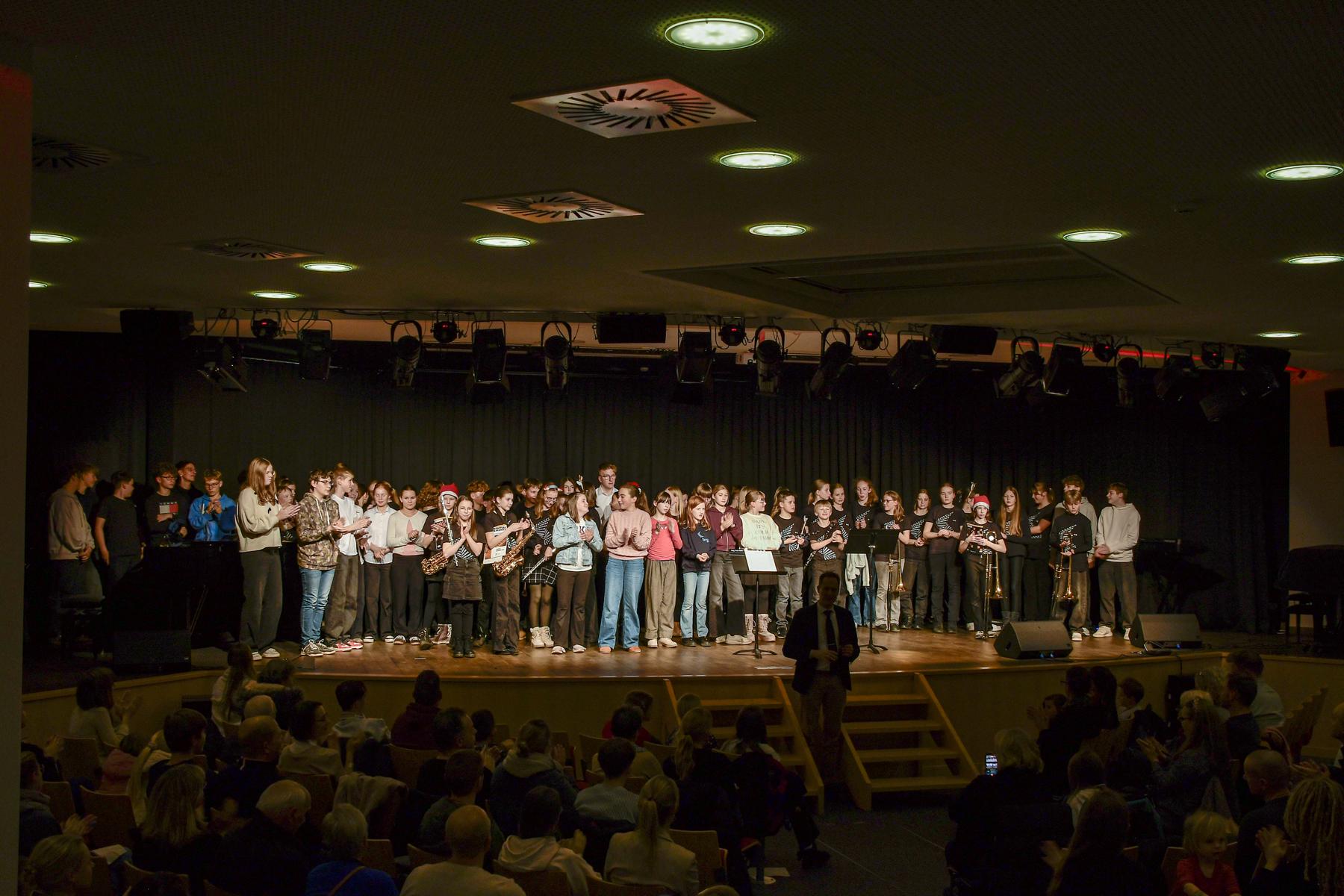 Am 18. Dezember 2024 verwandelte sich das Forum des Bernhard-Riemann-Gymnasiums in Scharnebeck in eine stimmungsvolle Bühne für das traditionelle Weihnachtskonzert. Schülerinnen und Schüler aus den Jahrgängen 5 bis 13 sowie die drei Bläserklassen (5b, 6b und 7b) präsentierten ein vielfältiges musikalisches Programm, das die Herzen der Besucher höher schlagen ließ. Das bis auf den letzten Platz besetzte Forum war erfüllt von festlicher Atmosphäre. Neben traditionellen Weihnachtsliedern, bei denen das Publikum begeistert mitsang, beeindruckten die jungen Musikerinnen und Musiker mit einer beeindruckenden Vielfalt. Von klassischen Klavierstücken über bekannte Filmmusik bis hin zu weiteren musikalischen Highlights bot der Abend ein abwechslungsreiches Programm für Jung und Alt. Besonders die Darbietungen der Bläserklassen sorgten für Begeisterung, während die Solistinnen und Solisten mit ihrem Können für Gänsehautmomente sorgten. Die gelungene Mischung aus Besinnlichkeit und schwungvollen Melodien stimmte das Publikum perfekt auf die Weihnachtszeit ein. Das Weihnachtskonzert war nicht nur ein kultureller Höhepunkt im Schulkalender, sondern auch ein wunderbarer Beweis für das musikalische Talent und Engagement der Schülerinnen und Schüler. Ein gelungener Abend, der allen noch lange in Erinnerung bleiben wird. Ein besonderer Dank gilt Herrn Freienstein und seiner Technik-AG, die an diesem Abend wie immer für den perfekten Sound sorgten.